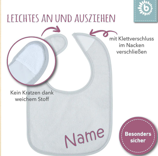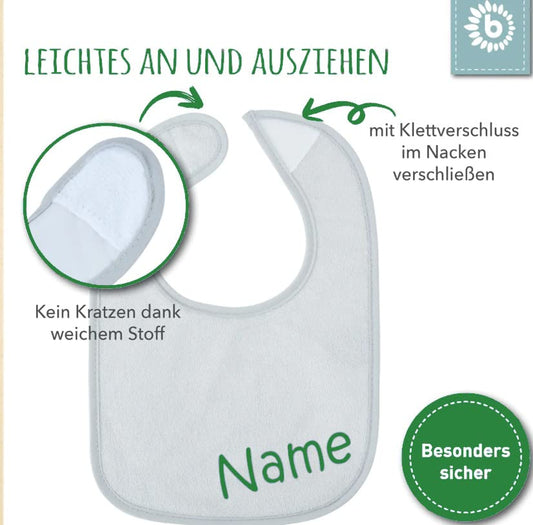Handgefertige Babygeschenke und -textilien wie Lätzchen mit Name, Babybodys mit Namen - bestickt oder bedruckt.