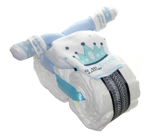 Kleines Windelmotorrad für Jungen blau | Windeltorte Motorrad mini