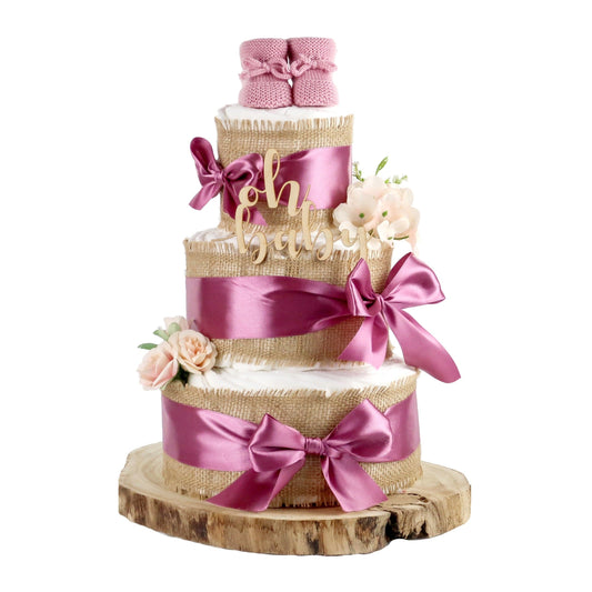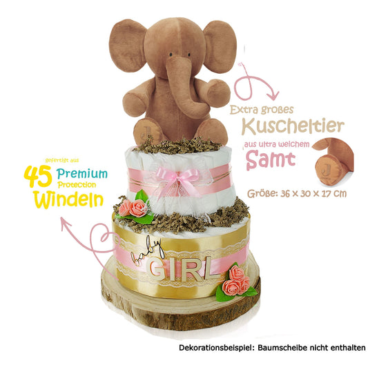 Große Windeltorte 2-stöckig | LITTLE PEANUT rosa | personalisierbar