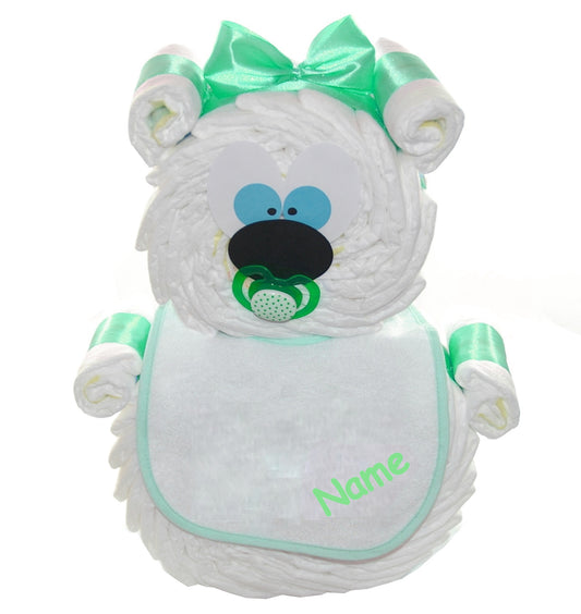 Windeltorte Windelbär türkis | optional Baby Lätzchen mit Namen bedruckt