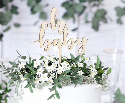 Cake Topper "oh baby", Holz, 17cm | Kuchentopper Babyparty